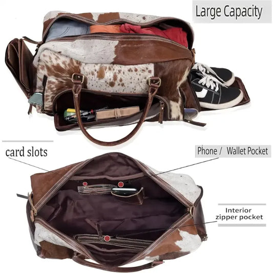 Cowhide Leather Duffel Bag | Unisex Travel Bag
