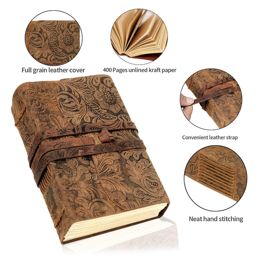 Rio Grande Vintage Leather Journal - Handmade Deckle Edge Leather Bound journal - Brown