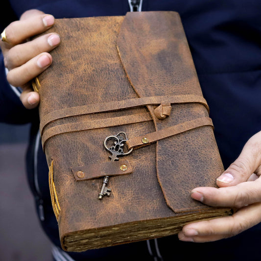 Platte Antique Handmade Leather Bound journal with deckle edge paper - Brown