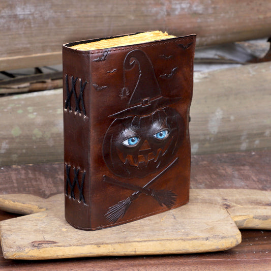 Halloween Special Hocus Pocus Book of Spells Leather Journal Writing Book - TAN