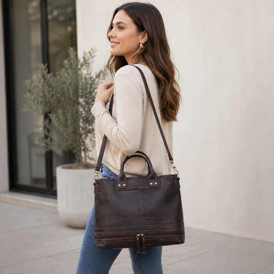 Portland Buffalo Leather Tote Handbag with Zipper - Tan