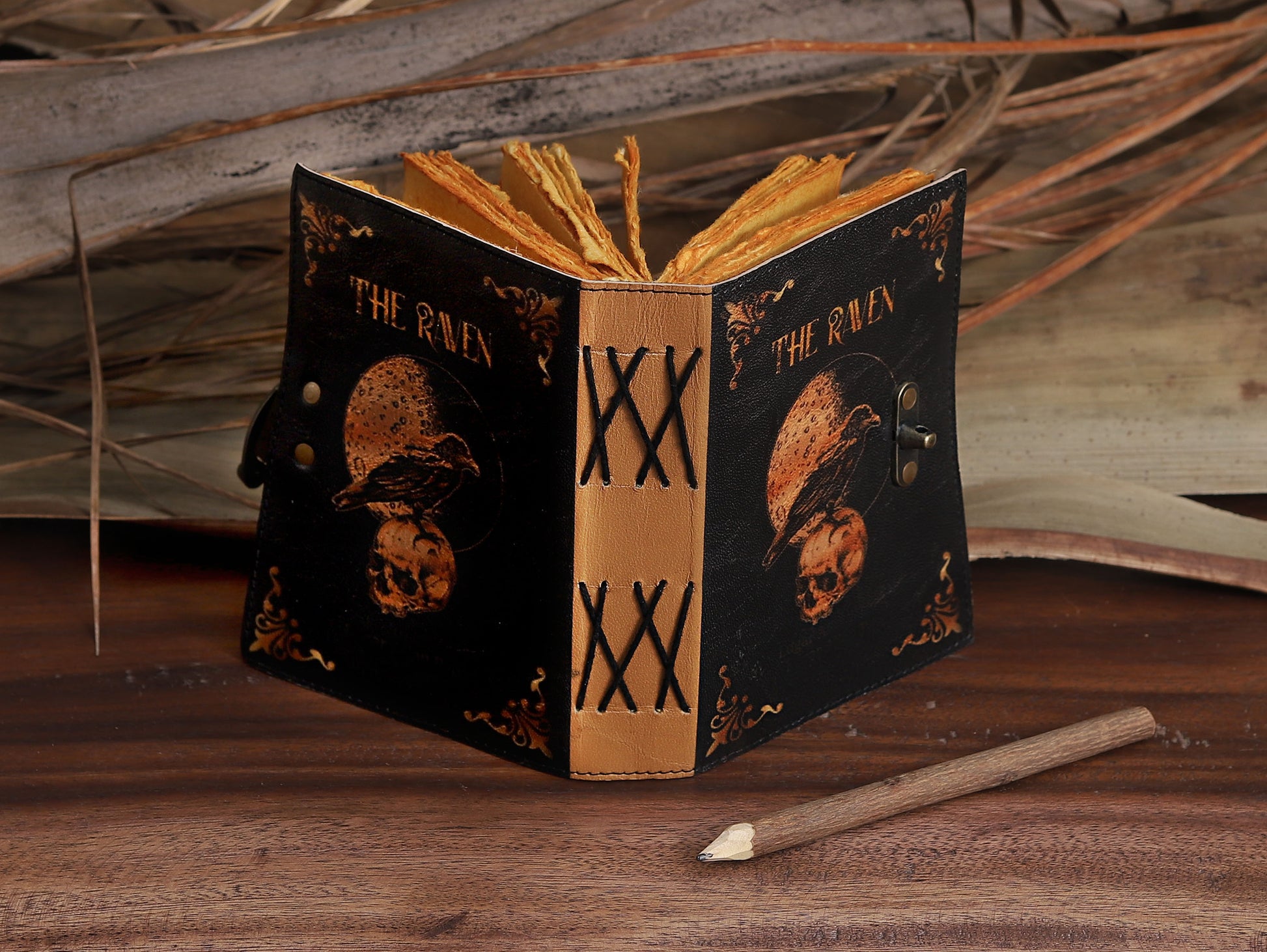 - WUNDERSCHÖN GEFERTIGT: Dieses wunderschöne, auffällige Design eines majestätischen Raben-Tagebuchs. Die schwarze Farbe verleiht ihm ein wunderschönes antikes Vintage-Gefühl. Handgefertigt aus Naturleder. Der Tagebucheinband weist ein wunderschönes Golddesign auf.