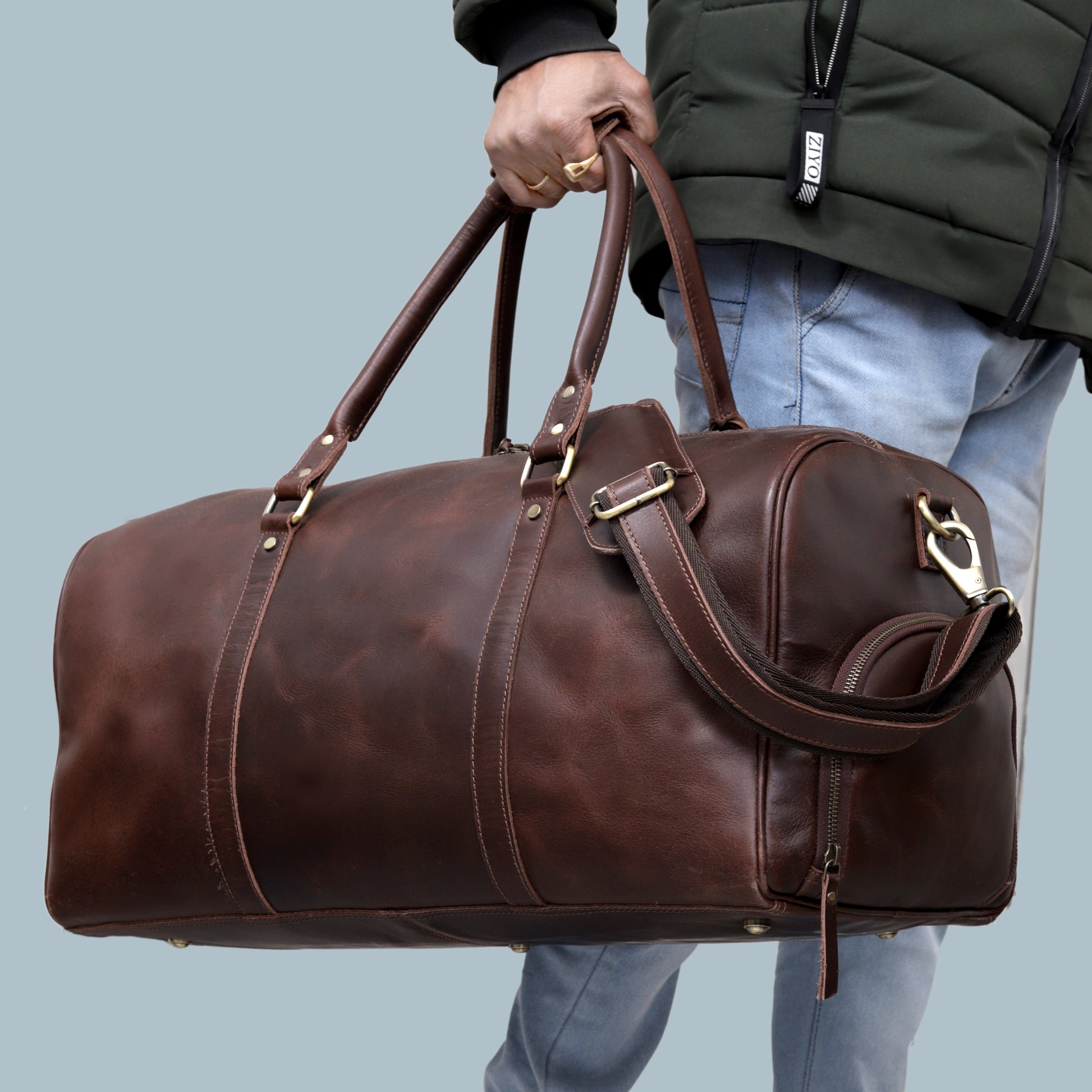 JOHN LEATHER DUFFEL BAG FOR MEN - BROWN