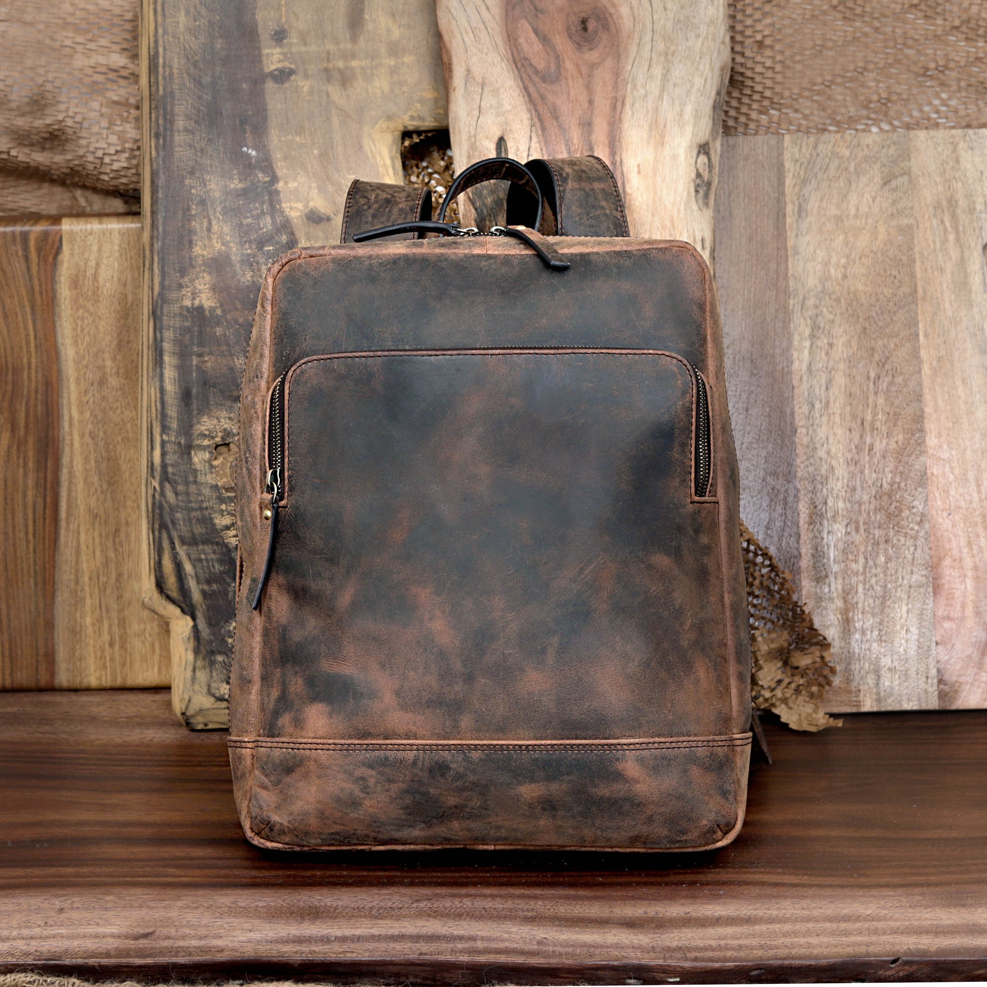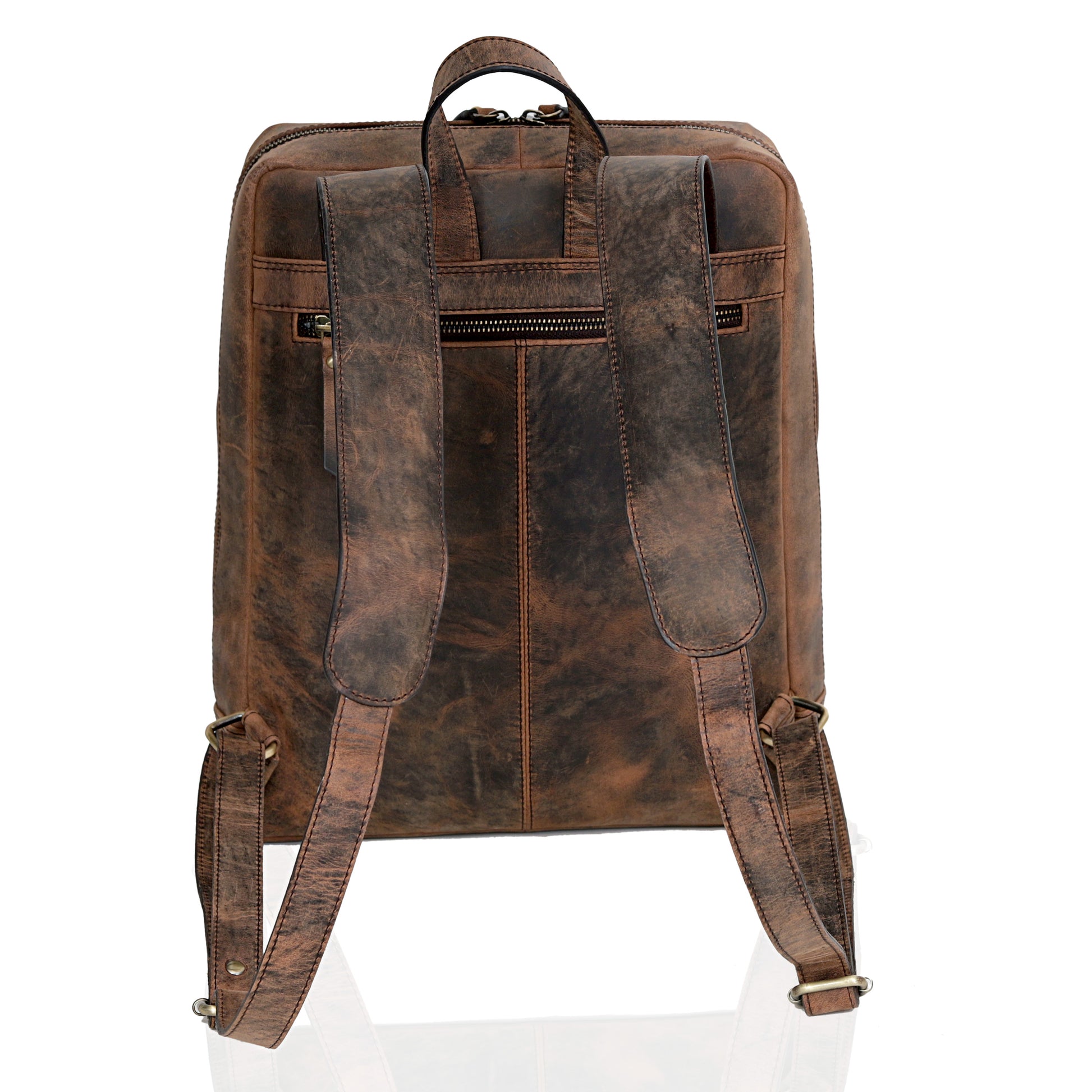 Organizer pockets for phone, pens, and cards brown leather backpack perfect to carry everywhere. With laptop compartment for a 15 Inch PC, a 12 inch tablet