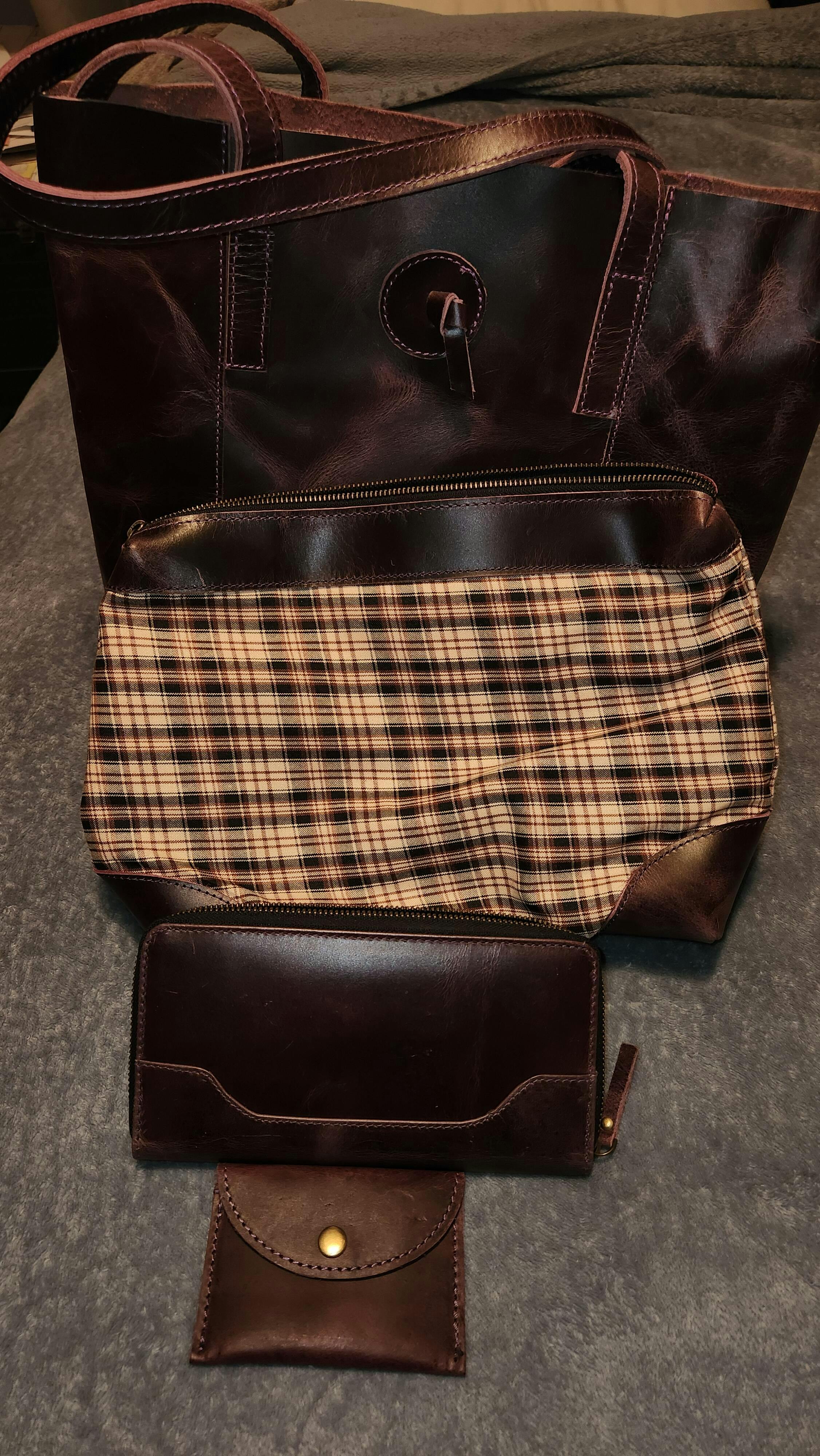 Leather duffel bag looks great and seems well made. Happy with my purchase.